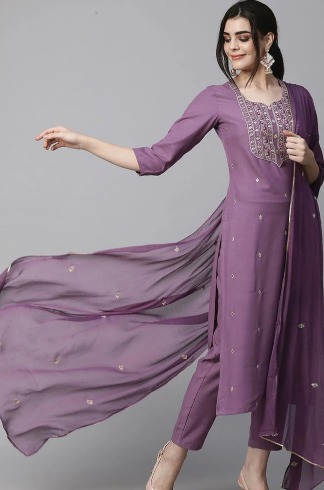 Shama Purples Silk Kurta Set with Dupatta