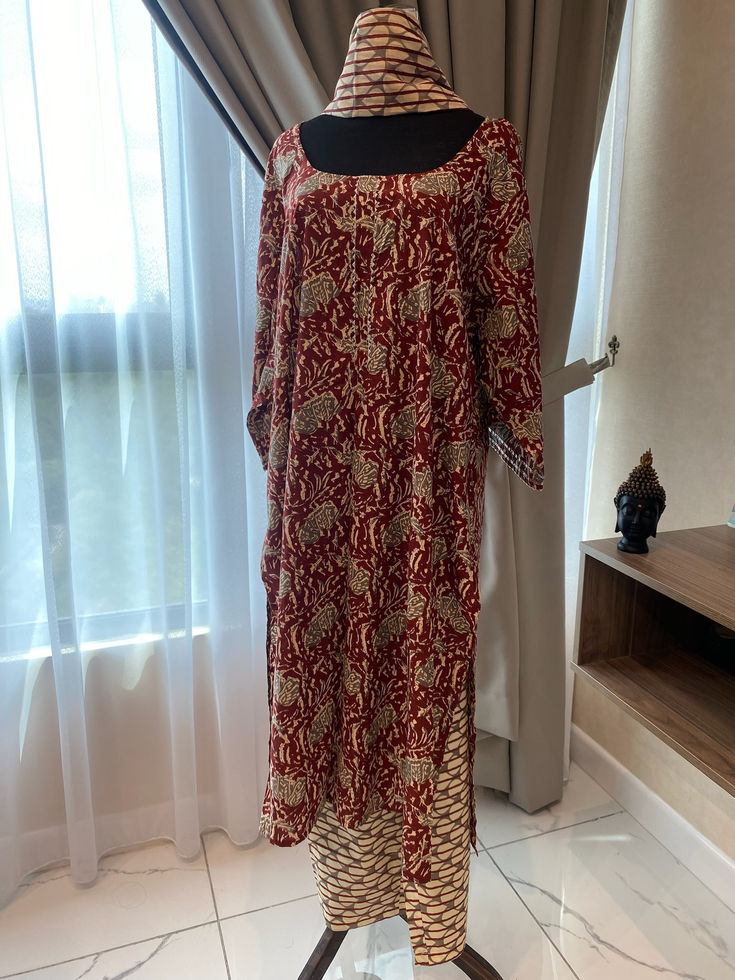 Women Plus Size Brown Floral Printed Cotton Kurta Set